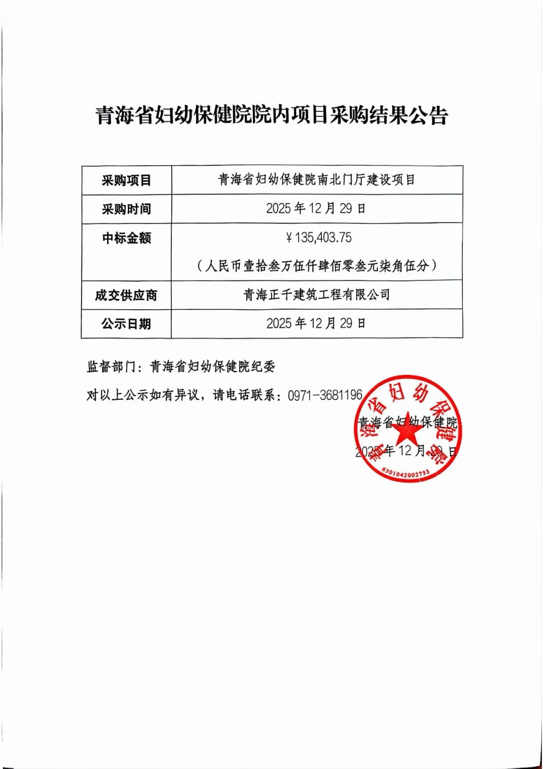 【公告】青海省妇幼保健院母婴康育中心月嫂(生活照护员)合作供应商比选项目入围结果公告
