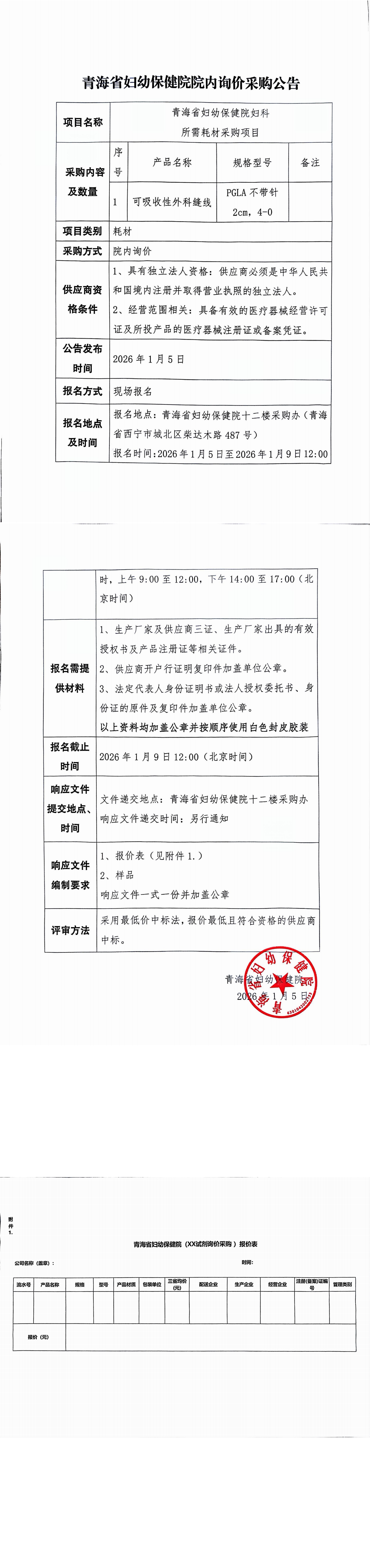 【公告】青海省妇幼保健院母婴康育中心月嫂(生活照护员)合作供应商比选项目入围结果公告