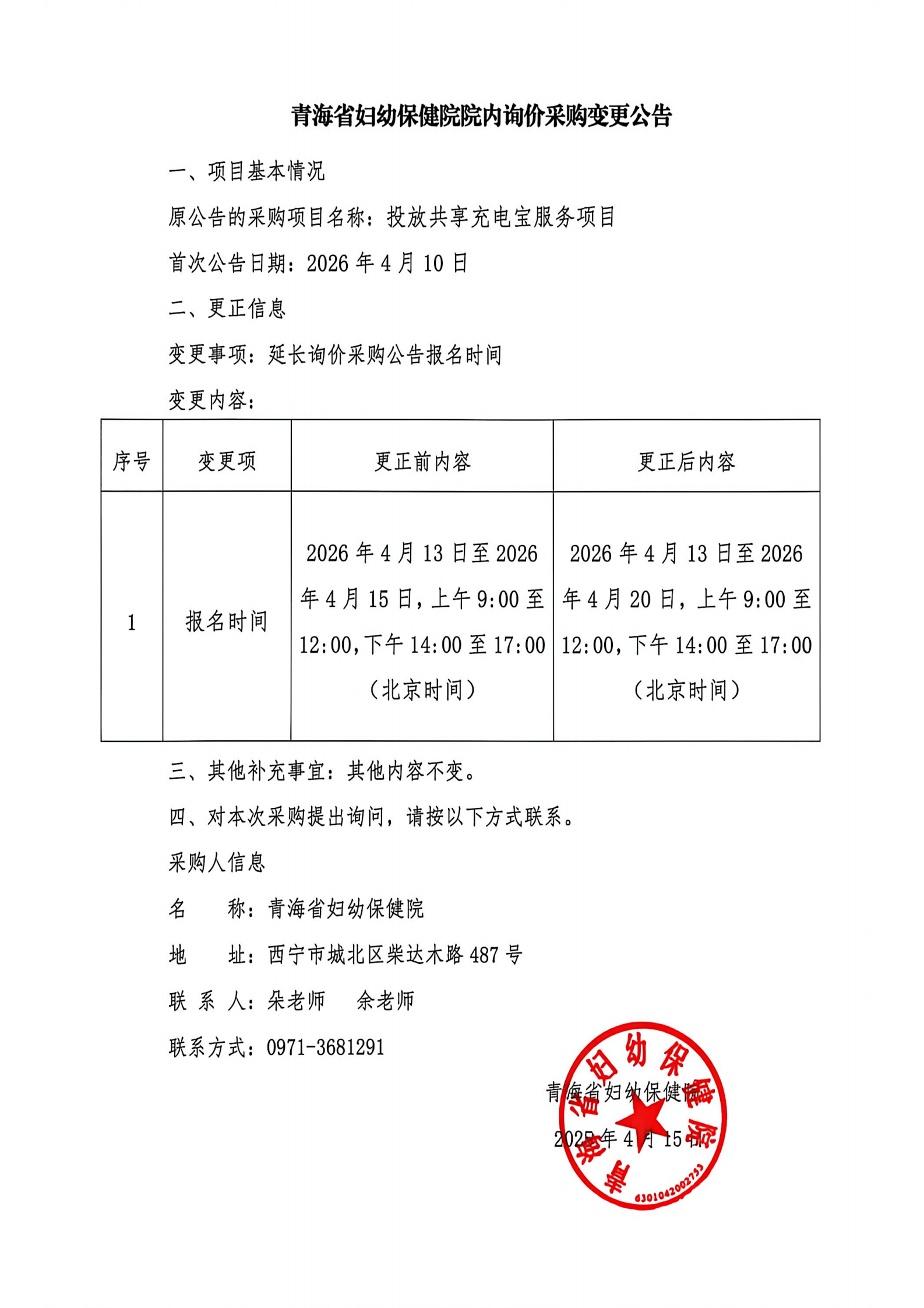 【公告】青海省妇幼保健院院内询价采购变更公告