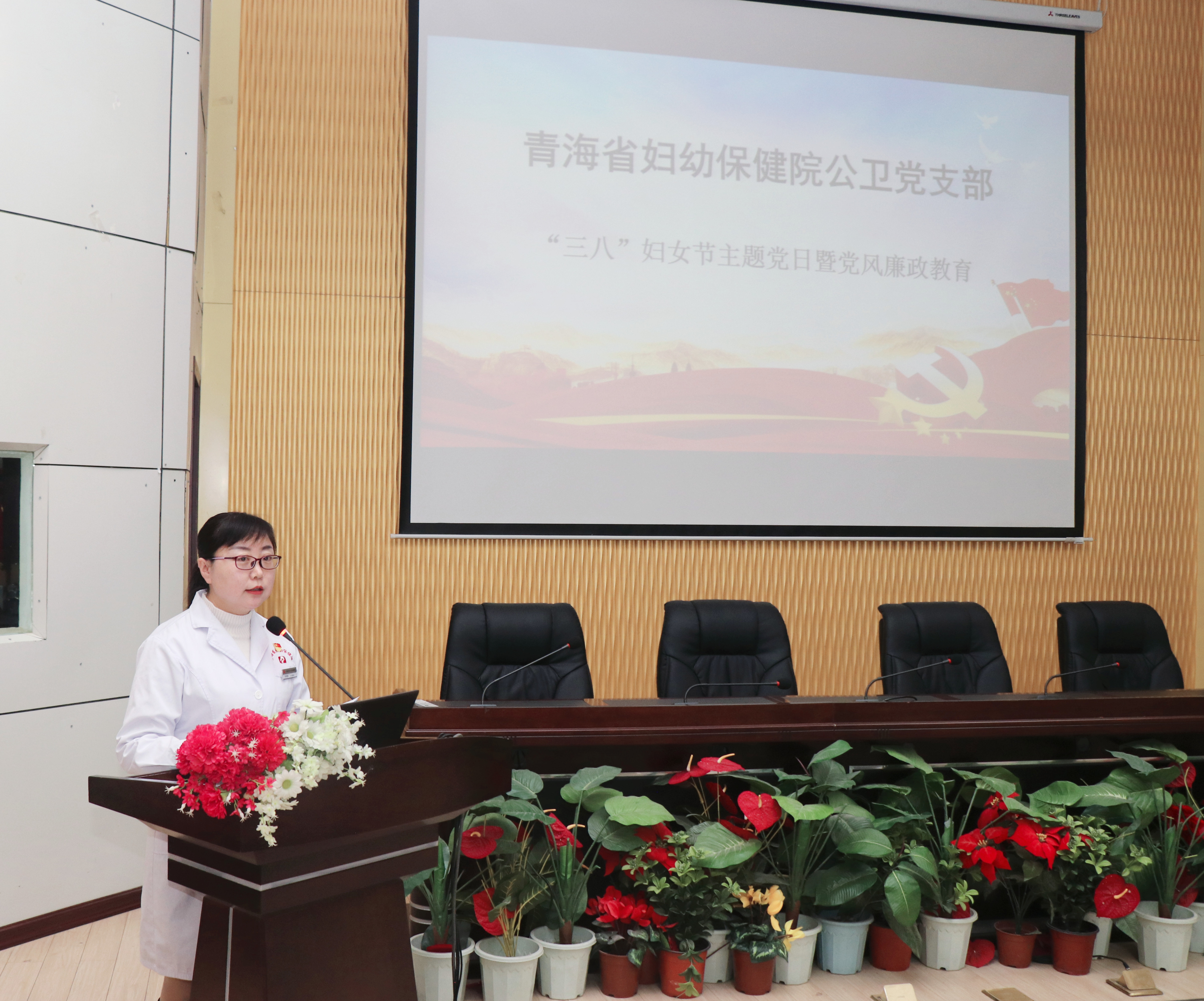 阳春三月无限好,铿锵“玫瑰”别样红,在国际“三八”妇女节来临之际,青海省妇幼保健院公卫党支部联合医技第二党支部为进一步推进党建工作,歌颂巾帼女英雄事迹,开展“三八”妇女节主题党日活动,并将传统的主题党日活动与党风廉政教育结合,颂扬先进的同时加强全院党风廉政建设工作。公卫支部书记张莲勋主持,院党委书记靳宝宁,纪委书记、副院长李庆业,院工会主席、副院长杨智勇,院纪委委员、各支部书记和支委、两个支部全体党员以及支部所在科室全体职工参加了活动。