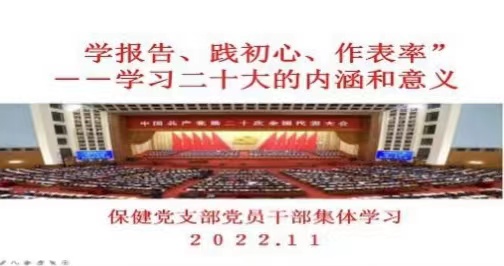 为更好地领会和贯彻“党的二十大报告”精神实质和丰富内涵,根据院党委部署, 11月15日下午,结合疫情防控要求,省妇幼保健院保健党支部以视频会议形式开展了“学报告、践初心、做表率—学习党的二十大内涵和意义”主题党日活动。支部书记张珊瑚主持本次活动,支部全体党员、入党积极分子、入党申请人等参加了活动。