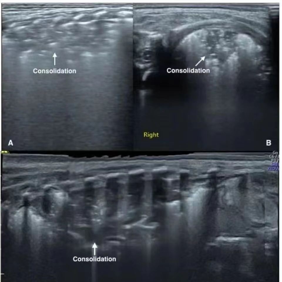 肺炎是新生儿最常见的肺部疾病之一,严重的常并发充血性心力衰竭、呼吸衰竭等严重并发症,经过大量临床实践,肺部超声对新生儿肺炎的敏感性及特异性非常高。