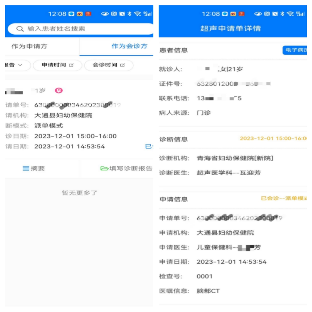 青海省妇幼保健院超声科依托云上妇幼对大通县妇幼保健院孕13+2周孕妇进行了早孕期胎儿结构异常的会诊并出具会诊报告。