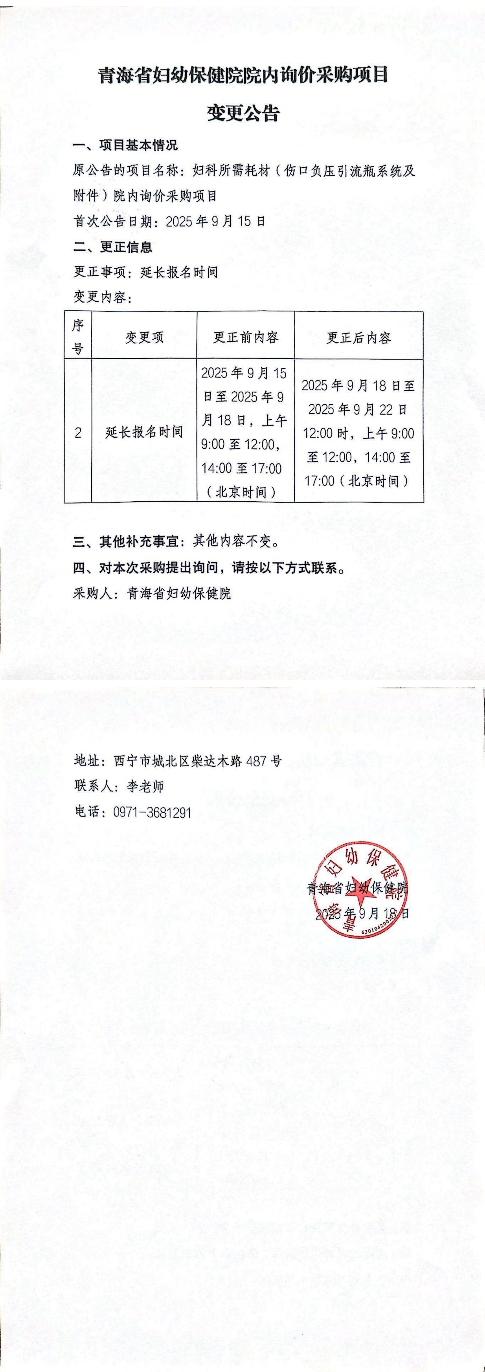 【公告】青海省妇幼保健院院内询价采购项目变更公告