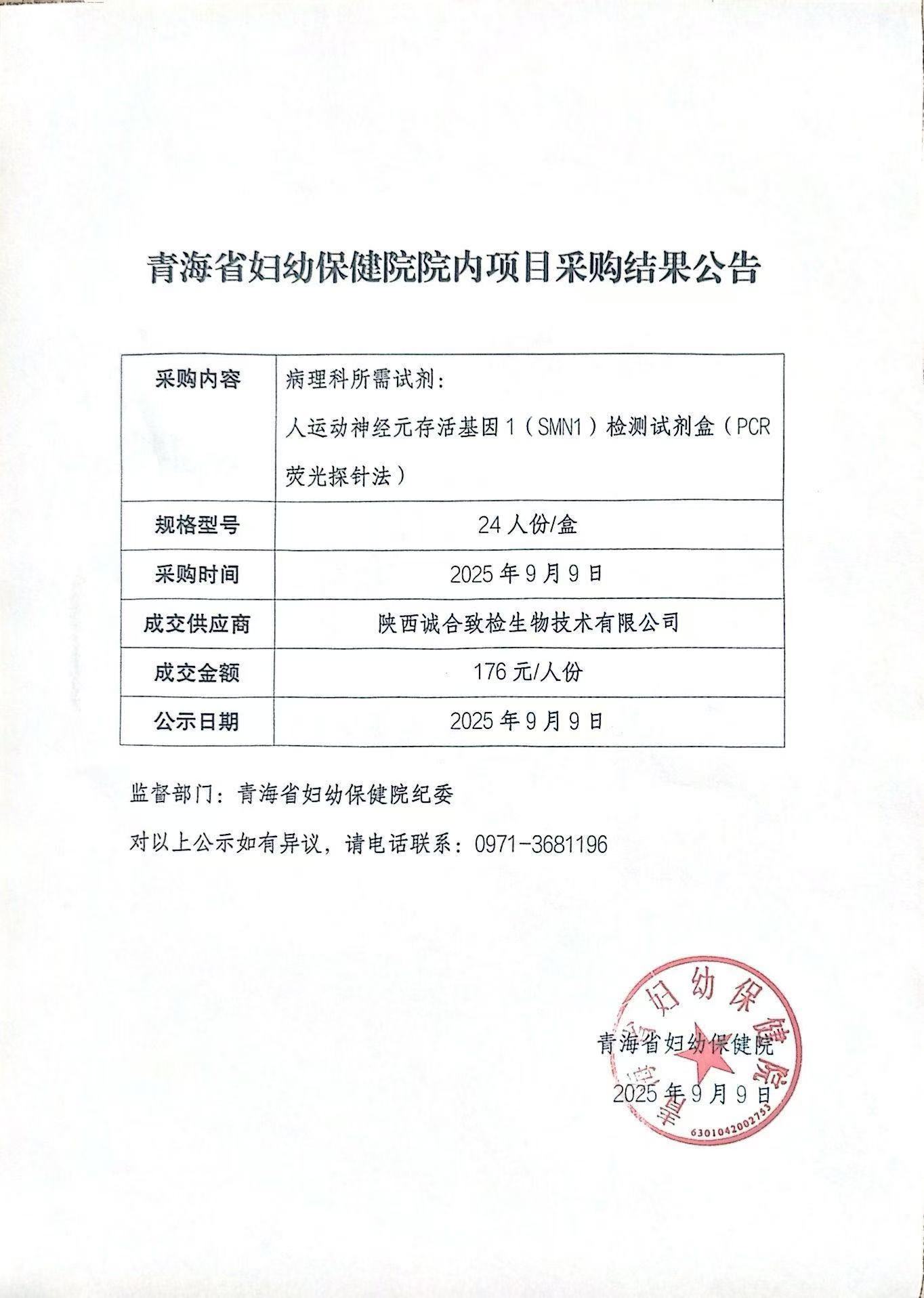【公告】青海省妇幼保健院院内项目采购结果公告(一)